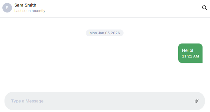 Start typing and send your first message. Tip: You can also attach files to your messages, by clicking on the clip icon in the text box.