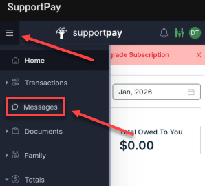 Log in to your account at my.supportpay.com, and select the family you want to message if required.